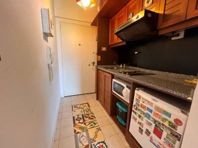 El estudio tiene un living comedor con una mesa y sillas para cuatro, cama doble, cocina y baño completamente equipados. También cuenta con un hermoso balcón con vista abierta.