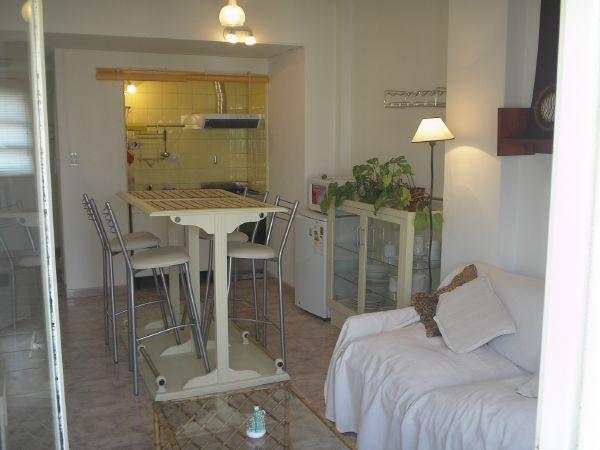 Este apartamento MUY LUMINOSO en dos niveles ,tipo duplex, cuenta con un living con mesa y sillas para cuatro, un sofa cama doble, balcon y kitchinette en el primer nivel.