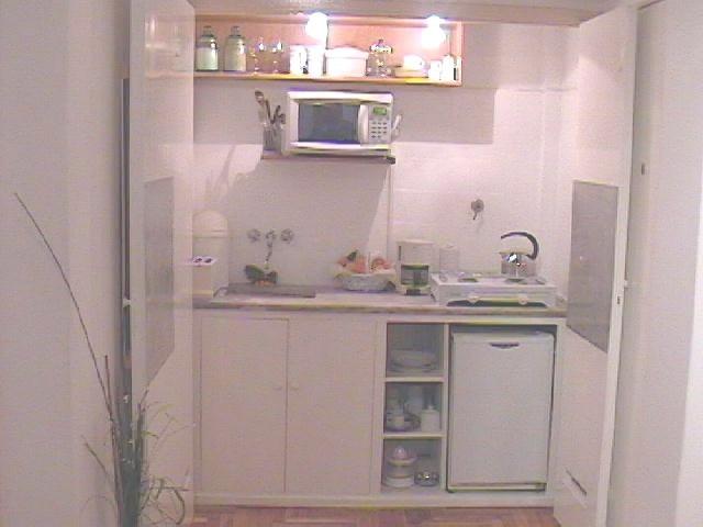 bed. Kitchinet with microwaves, portable stove, pulled, coffee and fridge.