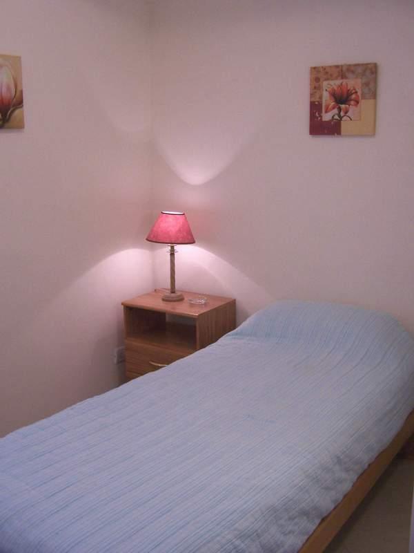 last with single bed and suite bathroom. Living-room with sofa, table and chairs