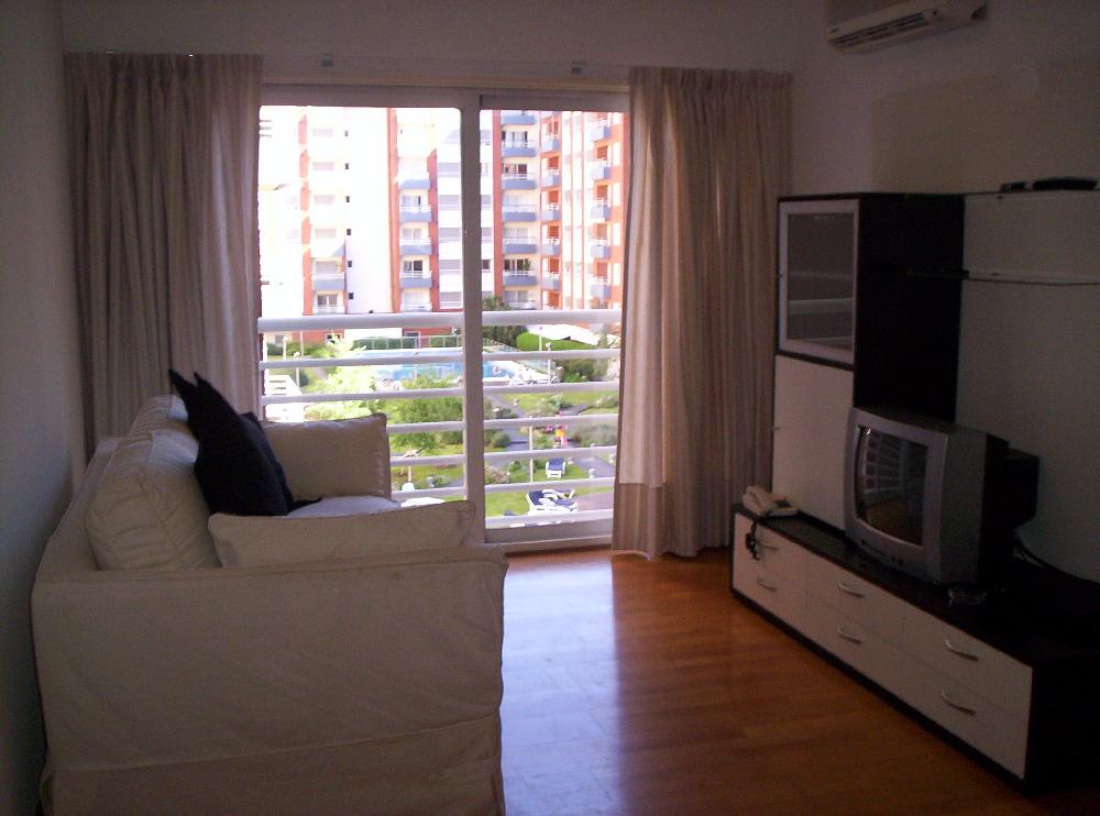 El apartamento cuenta con una cama doble, una simple, TV con cable, sofa, hermosa vista, cocina a gas y piscina del edificio.