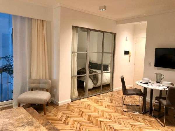 Segui entre Lafinur y Republica de la IndiaPalermo chico1 dormitorio34 m2Ubicado en Palermo chico, a 2 cuadras de la avda Las Heras. a 3 de Avda Libertador, cerca de muchas líneas de colectivo dentro de ese rango. Está completamente equipado, sofá, mesa y sillas para 2 personas. Placard, cama doble. Con un baño equipado con todo lo necesario y mas, al igual que su cocina . TV por cable – Aire Acondicionado - Heladera - Tostadora - Microondas -toallas , sabanas LAVARROPAS DENTRO DE LA UNIDAD